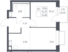 2-комнатная квартира № 623, 34.25 м2 с отделкой 7 эт.