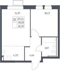 2-комнатная квартира № 415, 38.28 м2 с отделкой 4 эт.