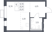 Студия № 317, 25.91 м2 с отделкой 9 эт.