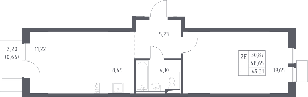 2-комнатная квартира № 525, 48.65 м2 с отделкой 9 эт.