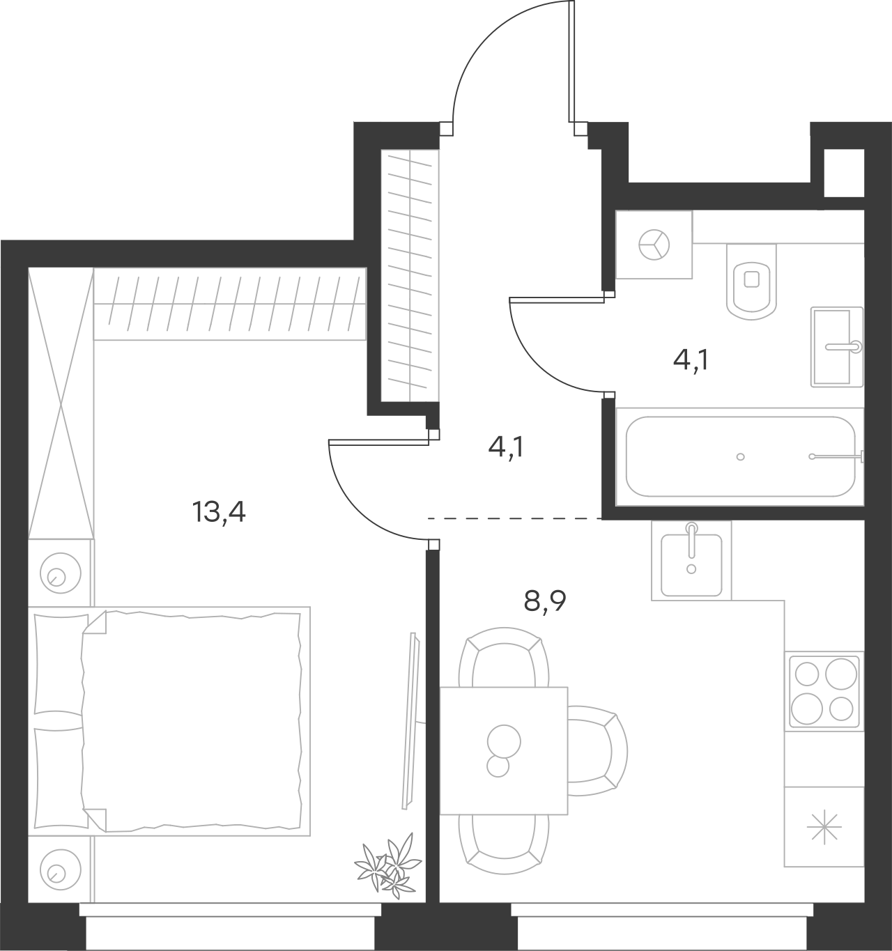 1-комнатная квартира № 15, 30.50 м2 без отделки 4 эт.
