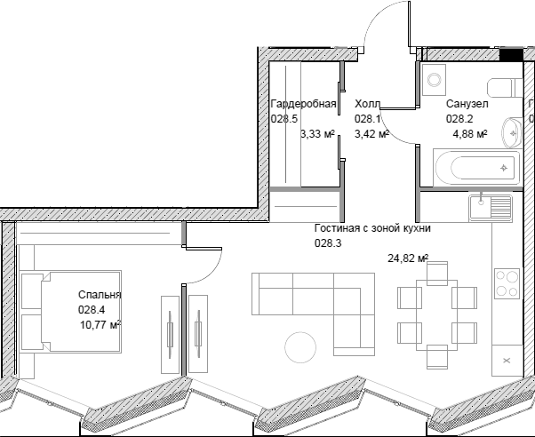 2-комнатная квартира № 28, 47.14 м2 с отделкой 5 эт.