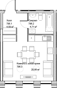 Студия № 796, 30.16 м2 с отделкой 1 эт.