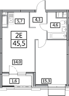 2-комнатная квартира № 637, 44.40 м2 без отделки 17 эт.