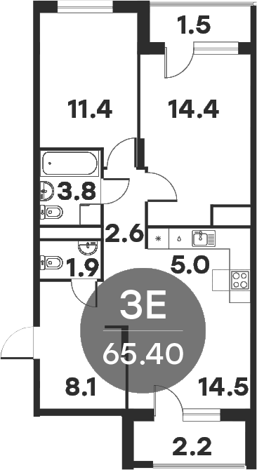 3-комнатная квартира № 10, 61.70 м2 с отделкой 3 эт.