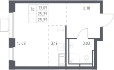 Студия № 343, 25.39 м2 с отделкой 17 эт.