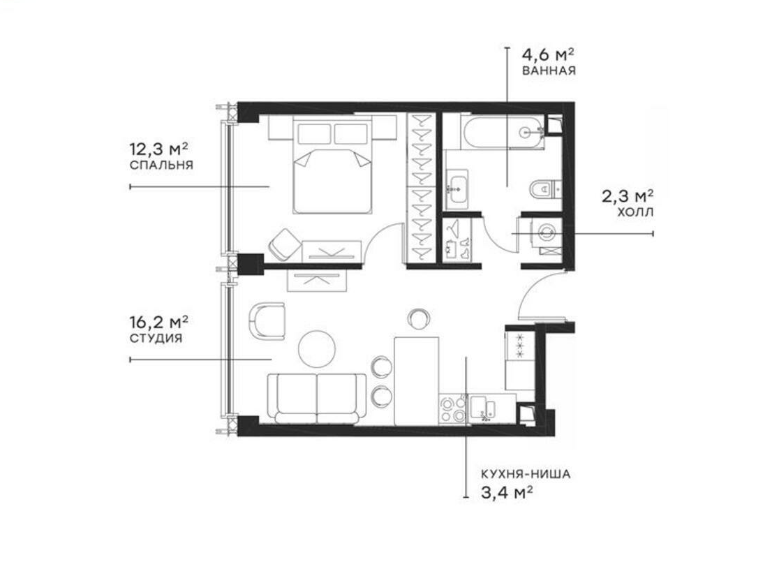 2-комнатная квартира № 186, 38.73 м2 с отделкой 18 эт.