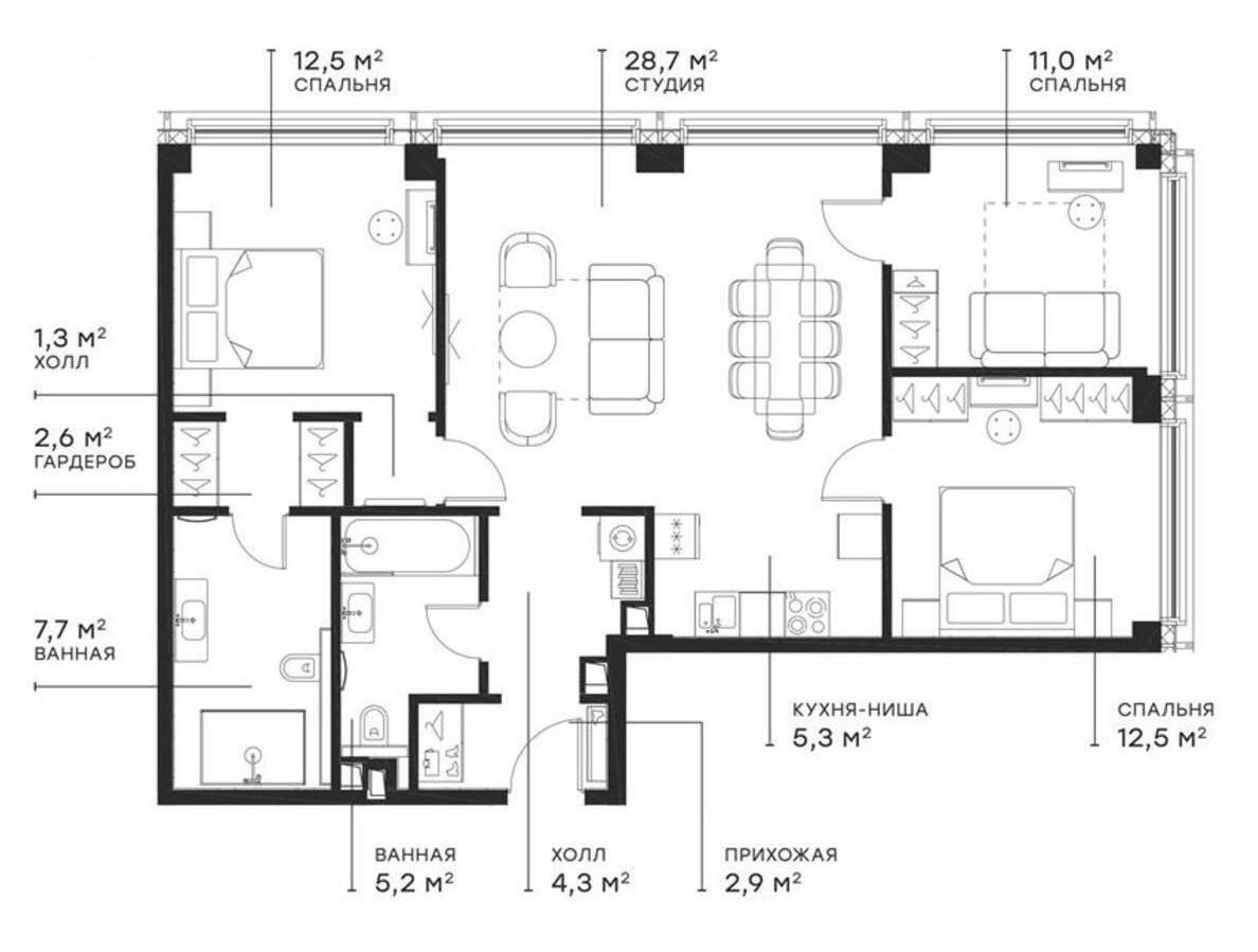 4-комнатная квартира № 331, 93.85 м2 с отделкой 32 эт.