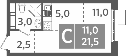 Студия № 399, 21.50 м2 с отделкой 8 эт.
