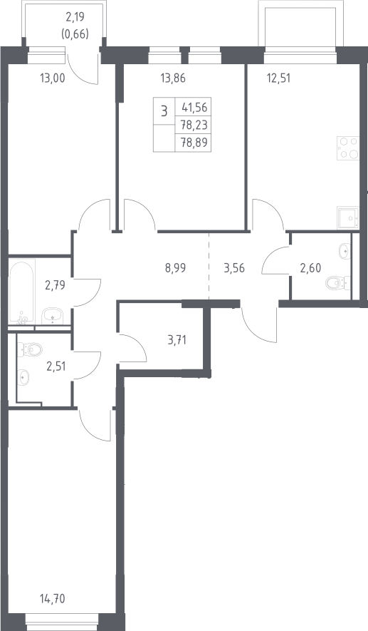 3-комнатная квартира № 355, 78.23 м2 с отделкой 4 эт.