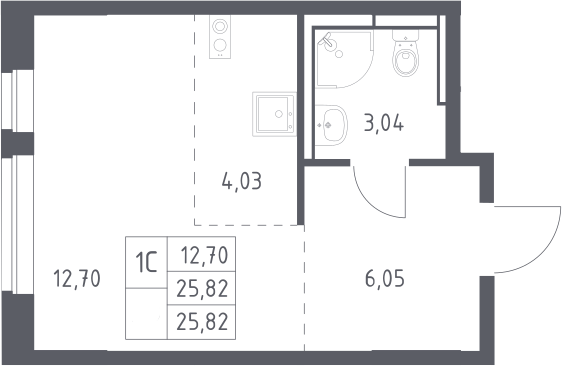 Студия № 204, 25.82 м2 с отделкой 17 эт.