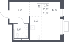 Студия № 212, 25.82 м2 с отделкой 2 эт.