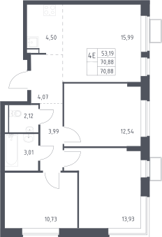 4-комнатная квартира № 283, 70.88 м2 с отделкой 8 эт.