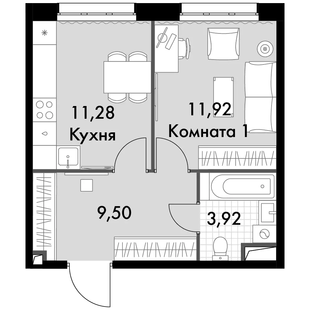1-комнатная квартира № 655, 36.62 м2 с отделкой 2 эт.