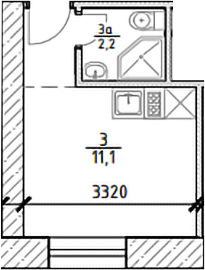 Студия № 203, 13.30 м2 с отделкой 2 эт.