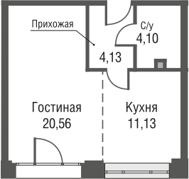 Студия № 98, 39.92 м2 без отделки 11 эт.