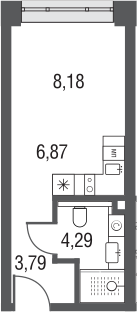 Студия № 247, 22.97 м2 без отделки 4 эт.