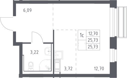 Студия № 92, 25.73 м2 с отделкой 8 эт.
