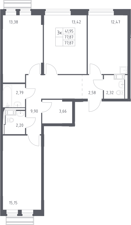 3-комнатная квартира № 176, 77.87 м2 с отделкой 4 эт.