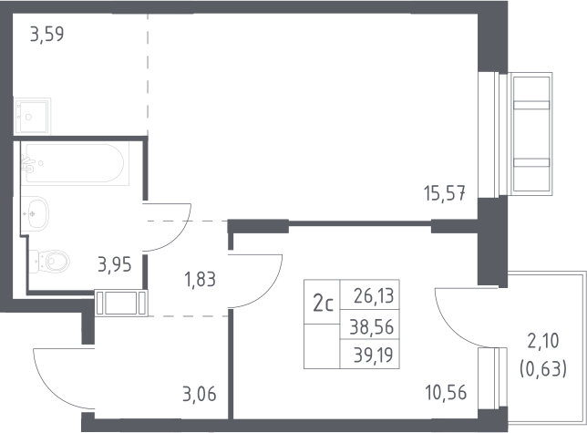 2-комнатная квартира № 74, 38.56 м2 с отделкой 4 эт.