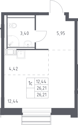 Студия № 237, 26.21 м2 с отделкой 8 эт.