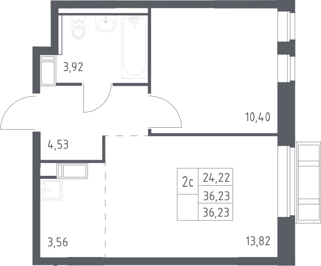 2-комнатная квартира № 455, 36.23 м2 с отделкой 2 эт.