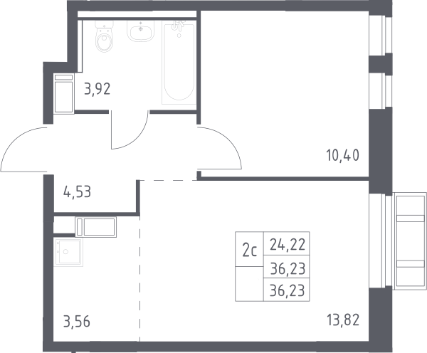 2-комнатная квартира № 479, 36.23 м2 с отделкой 4 эт.