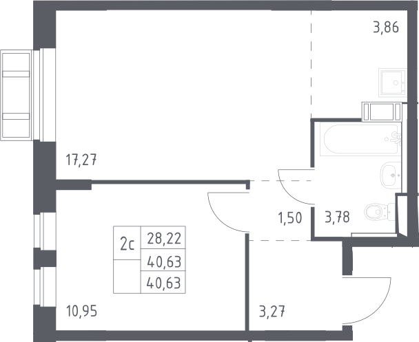 2-комнатная квартира № 497, 40.63 м2 с отделкой 6 эт.