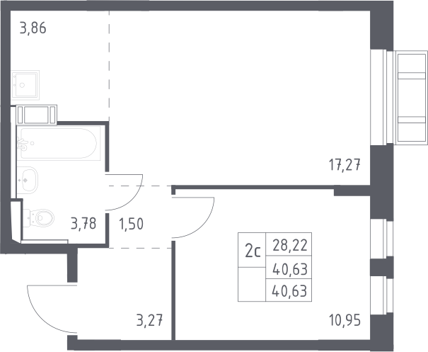 2-комнатная квартира № 522, 40.63 м2 с отделкой 8 эт.