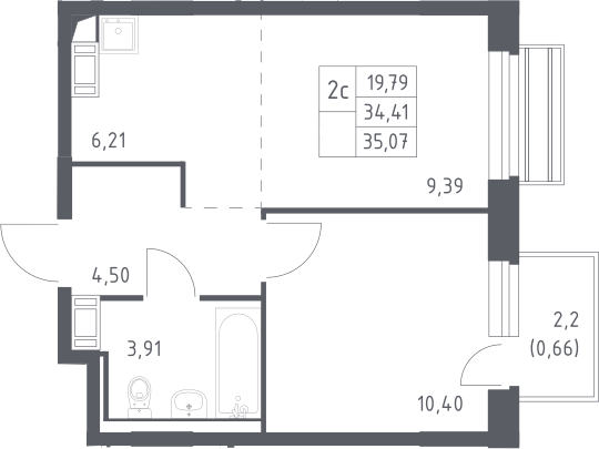 2-комнатная квартира № 352, 34.41 м2 с отделкой 9 эт.