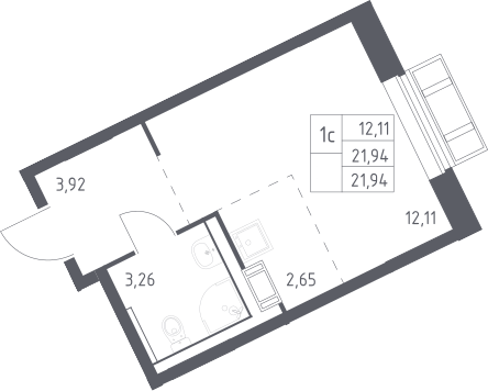 Студия № 348, 21.94 м2 с отделкой 6 эт.