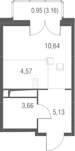 Студия № 39, 24.00 м2 без отделки 5 эт.