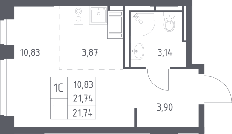 Студия № 128, 21.74 м2 с отделкой 6 эт.