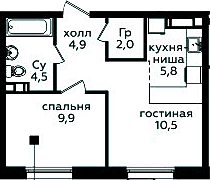2-комнатная квартира № 88, 37.60 м2 с отделкой 11 эт.