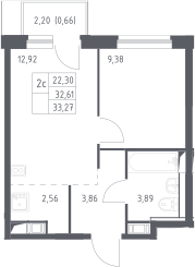 2-комнатная квартира № 85, 32.61 м2 с отделкой 10 эт.
