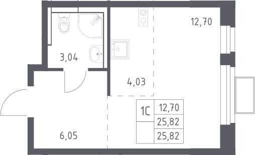 Студия № 211, 25.82 м2 с отделкой 2 эт.