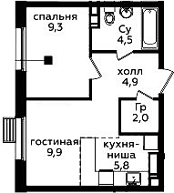 2-комнатная квартира № 771, 36.40 м2 с отделкой 3 эт.
