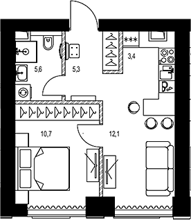 2-комнатная квартира № А1013, 37.00 м2 с отделкой 10 эт.