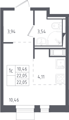Студия № 137, 22.05 м2 с отделкой 9 эт.