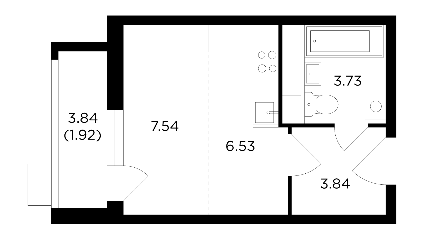 Студия № 70, 21.64 м2 без отделки 7 эт.