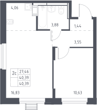 2-комнатная квартира № 21, 40.39 м2 с отделкой 3 эт.