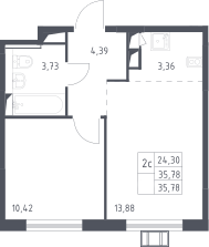 2-комнатная квартира № 16, 35.78 м2 с отделкой 3 эт.