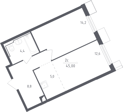 2-комнатная квартира № 223, 45.00 м2 с отделкой 15 эт.