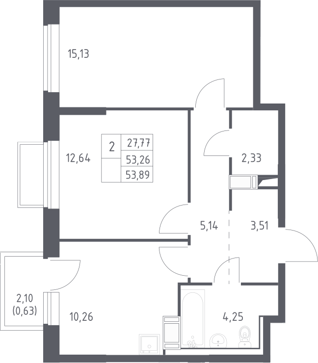 2-комнатная квартира № 473, 53.26 м2 с отделкой 12 эт.