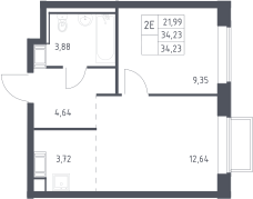 2-комнатная квартира № 810, 34.23 м2 с отделкой 6 эт.
