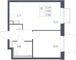 2-комнатная квартира № 886, 37.88 м2 с отделкой 12 эт.